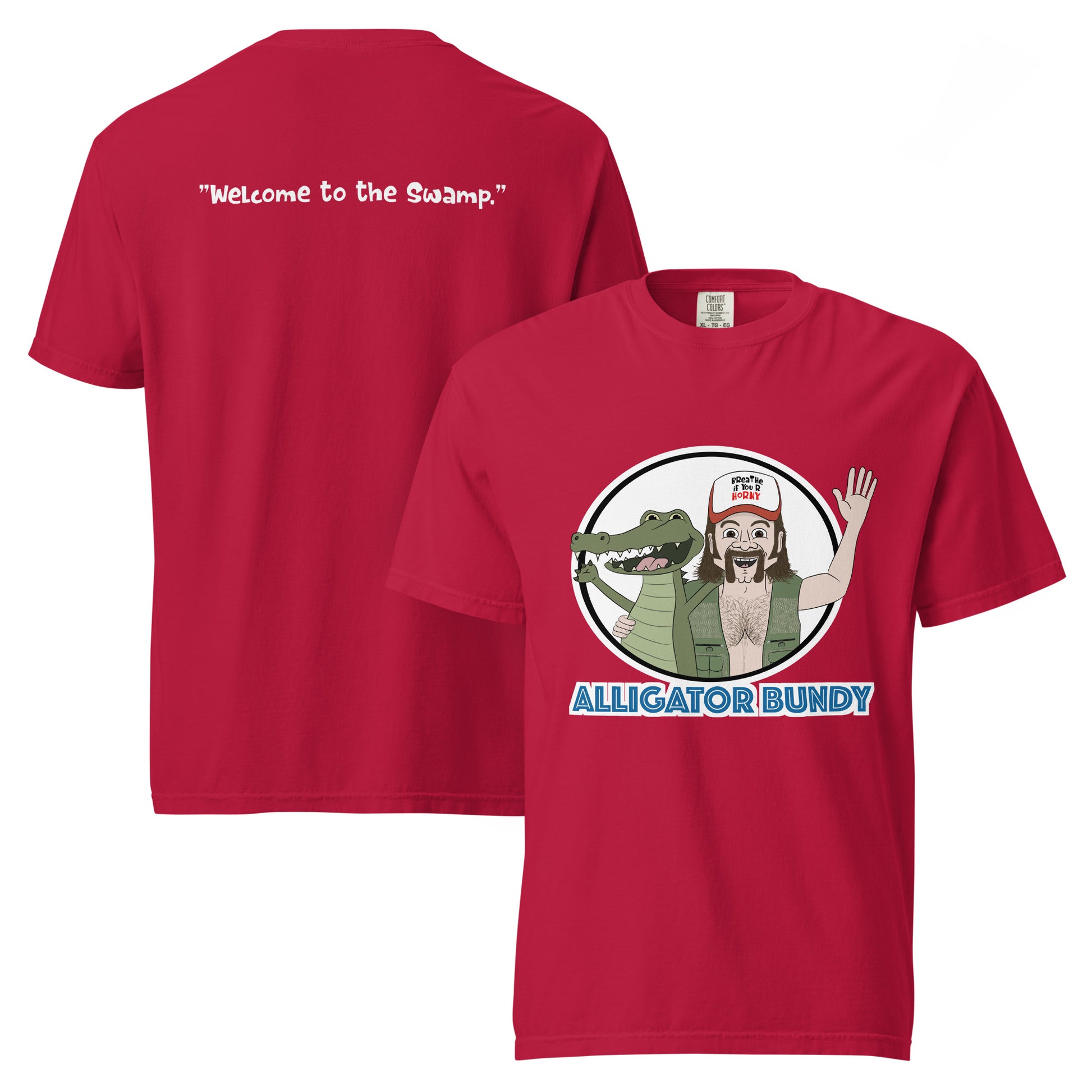 Rep the legend of the swamp with the official Alligator Bundy Logo T-Shirt. Bold logo on the front, ‘Welcome to the Swamp’ on the back. Perfect for fans, Florida chaos, and anyone brave enough to sip gator milk.
